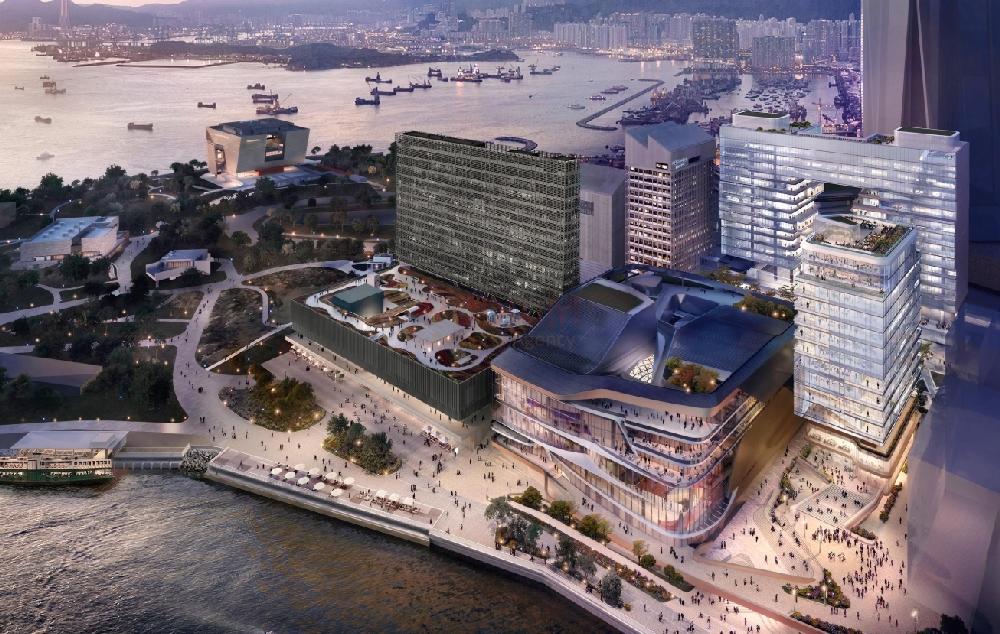 藝術廣場大樓預計於2027年完工,項目由3幢臨海寫字樓組成,包括東座、西座及南座,可建總樓面約67.2萬方呎,另設約2.7萬方呎零售空間。該項目東座和西座的頂部8層樓面相連,而摩根大通將租用最高的6層樓面。